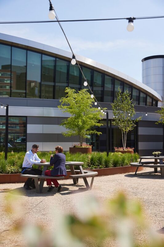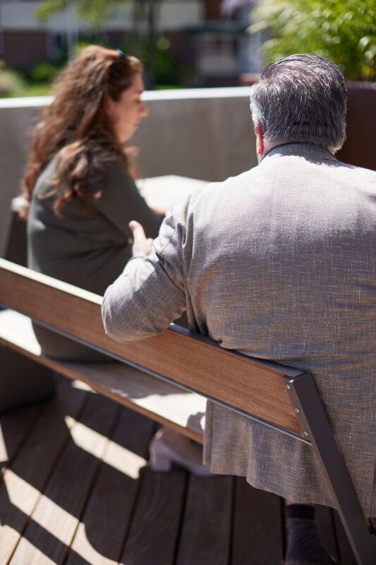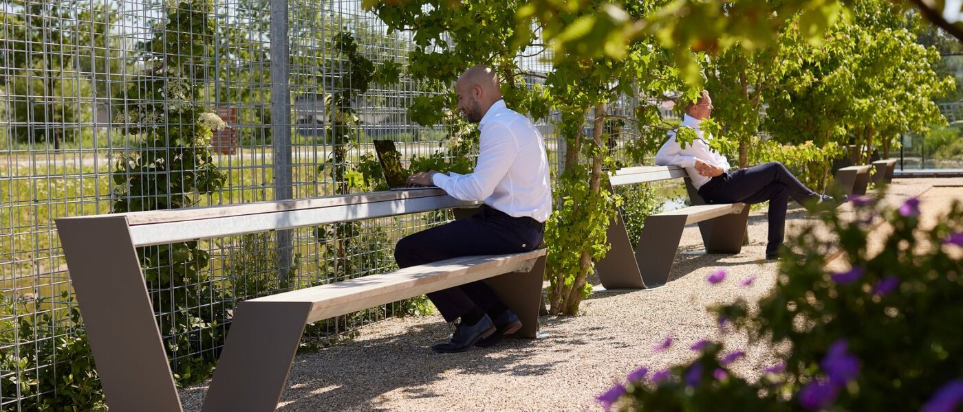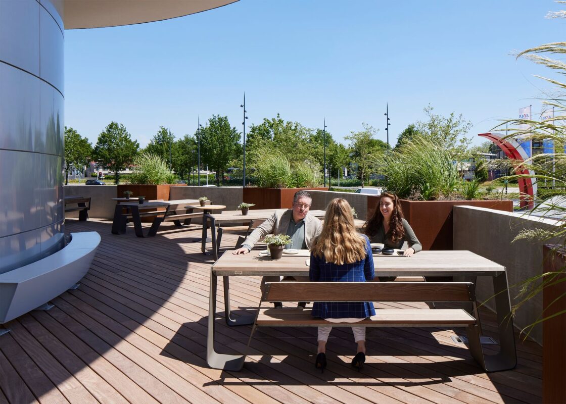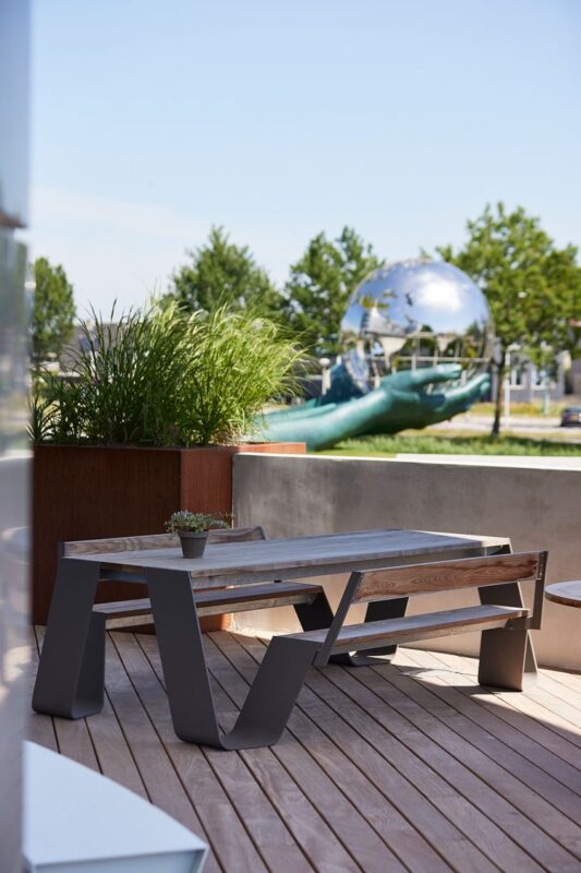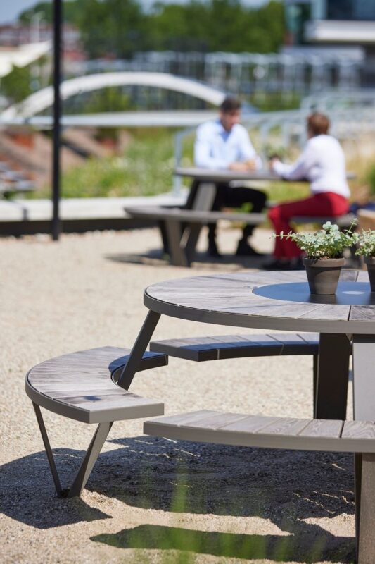 The many outdoor gardens are fully equipped with Extremis furniture to offer places to eat, sit, meet, relax, rest, and take work outdoors. “Bringing together functionality, durability, and esthetics, Extremis is a great asset”, explains landscape architect Bart Hoes.