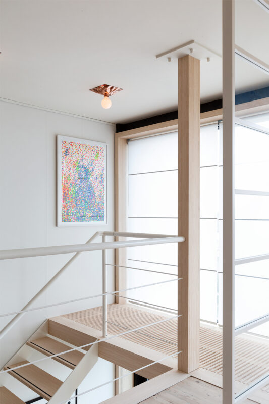 Hedendaagse architectuur, kunst en design vormen samen een tijdloos en sereen interieur met uitzicht op de Houthavens. Meubelontwerper Studio Josha werkte samen met MKA om het huis van kunstenaar Marie-Jose Walhof en haar man, Sjef Roymans, te ontwerpen.